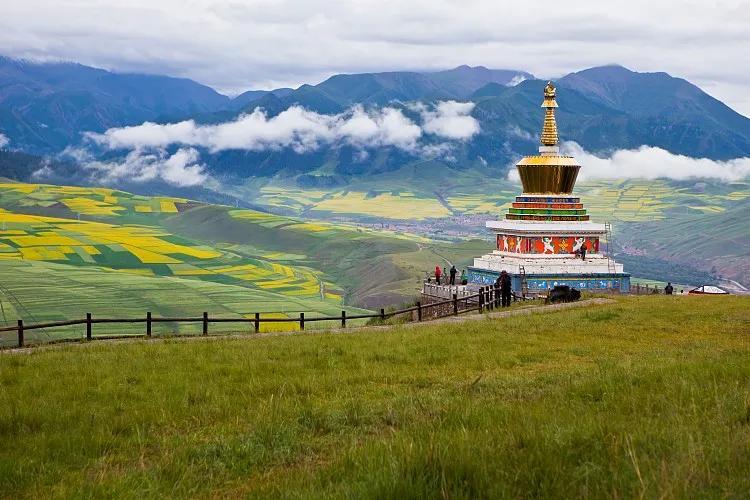 (舞台背景:青海的高原风光,蓝天白云,远处雪山连绵,近处草原广阔,一望无际。)